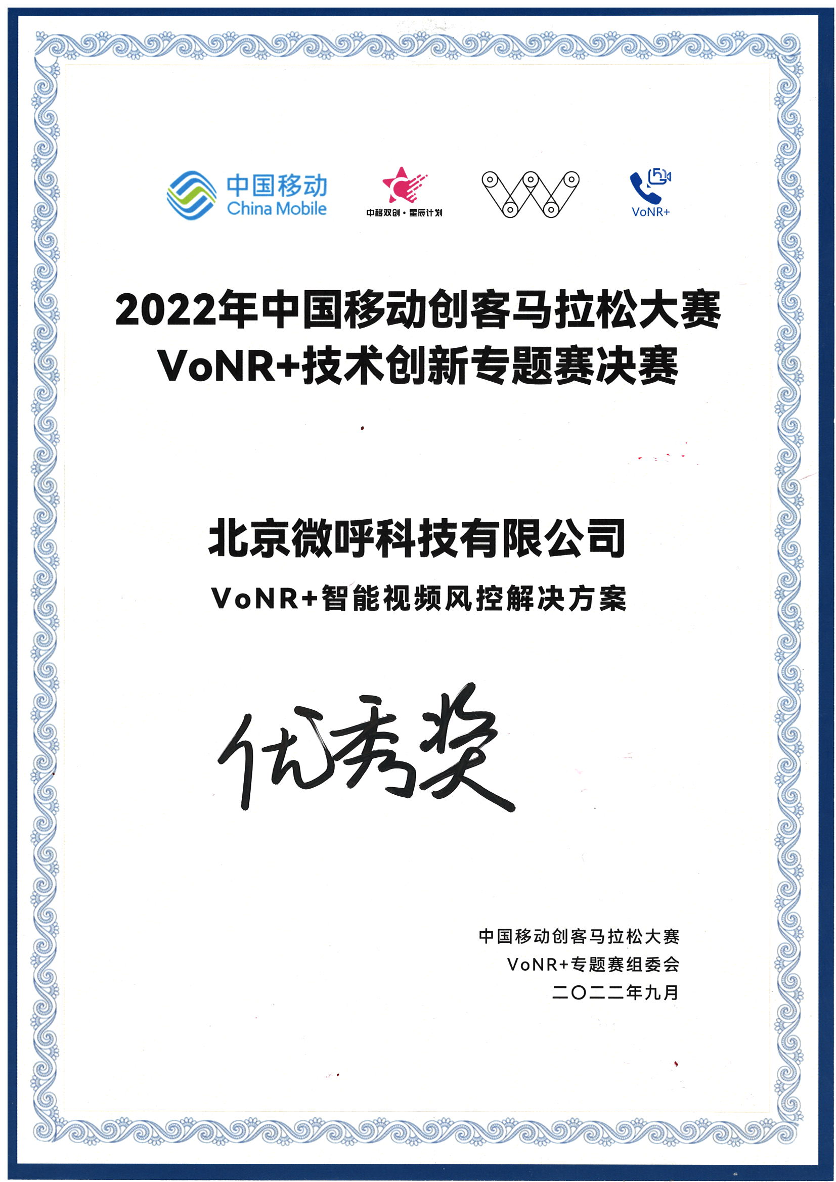 感谢本次大赛为微呼科技“VoNR+智能视频风控解决方案”提供了展示的平台,本次荣获优秀奖也是对微呼科技“VoNR+”相关创新工作的肯定。今后微呼科技将持续研发创新“VoNR+”相关产品和服务,同时结合自有AI能力及通信资源,力争打造VoNR+优质品牌,助力“VoNR+”行业创新及发展,为5G实时通信的展开贡献微呼力量。