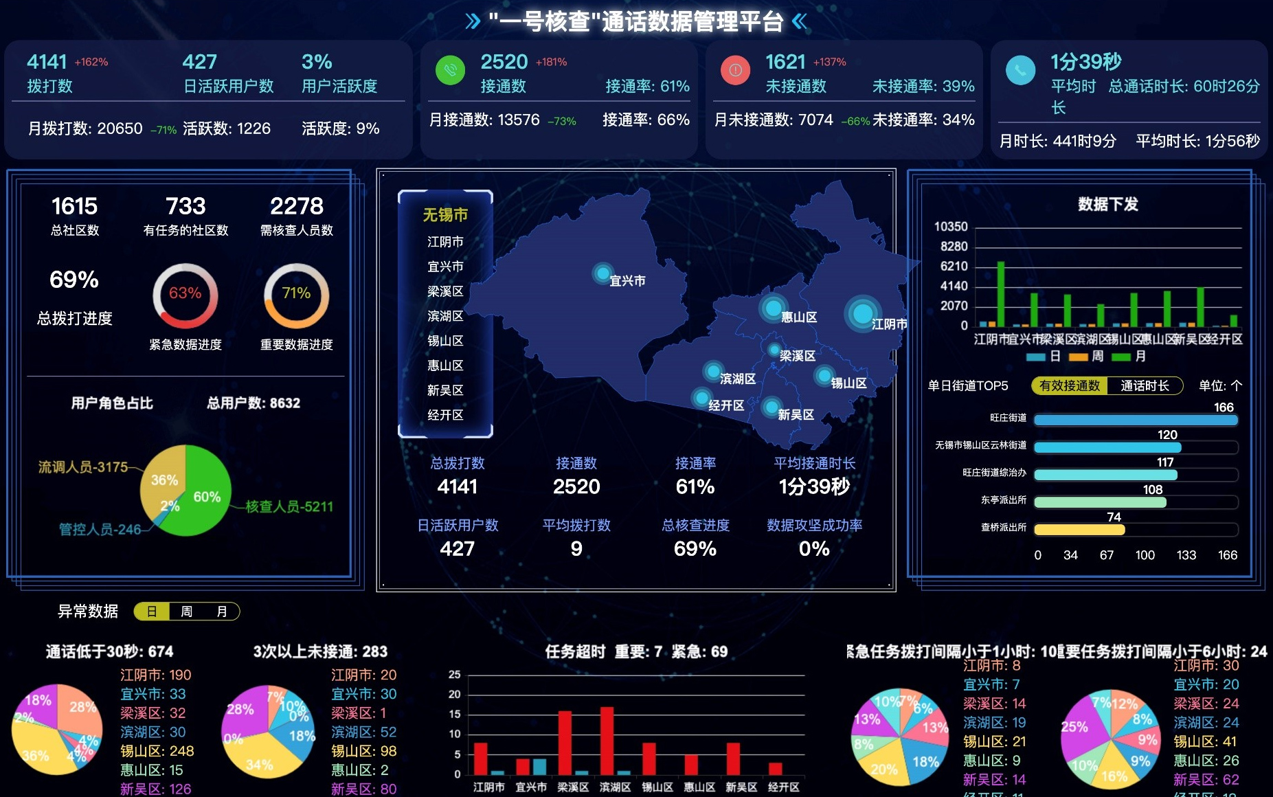 防疫工作者可通过多终端(手机端APP或电脑端)的账户登录,实现统一号码外呼(96600);可利用多级权限管理,安全高效地实现各岗位数据共享;可结合定制化功能模块,便捷地进行录音调听、外呼数据管理、坐席人员管理和报表呈现。有效地规范了电话回访工作流程,极大地提高了核查工作效率,充分地节约了人力和时间成本,高效地服务了疫情核实工作,全面助力各级基层部门疫情防控、智慧社区管理和数字城市服务等工作。