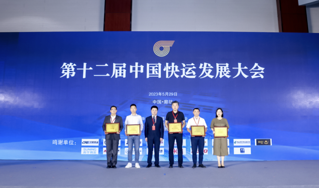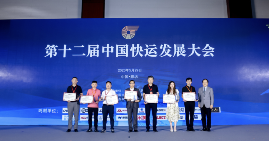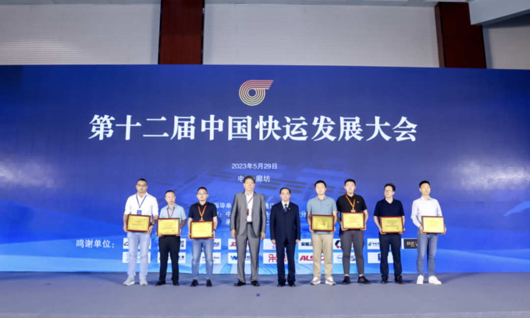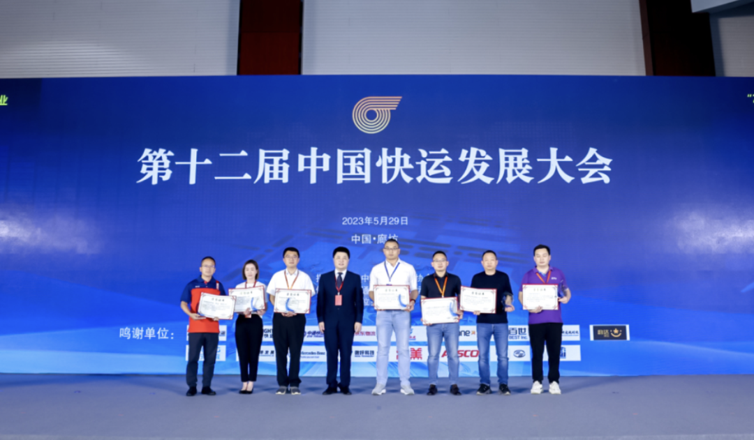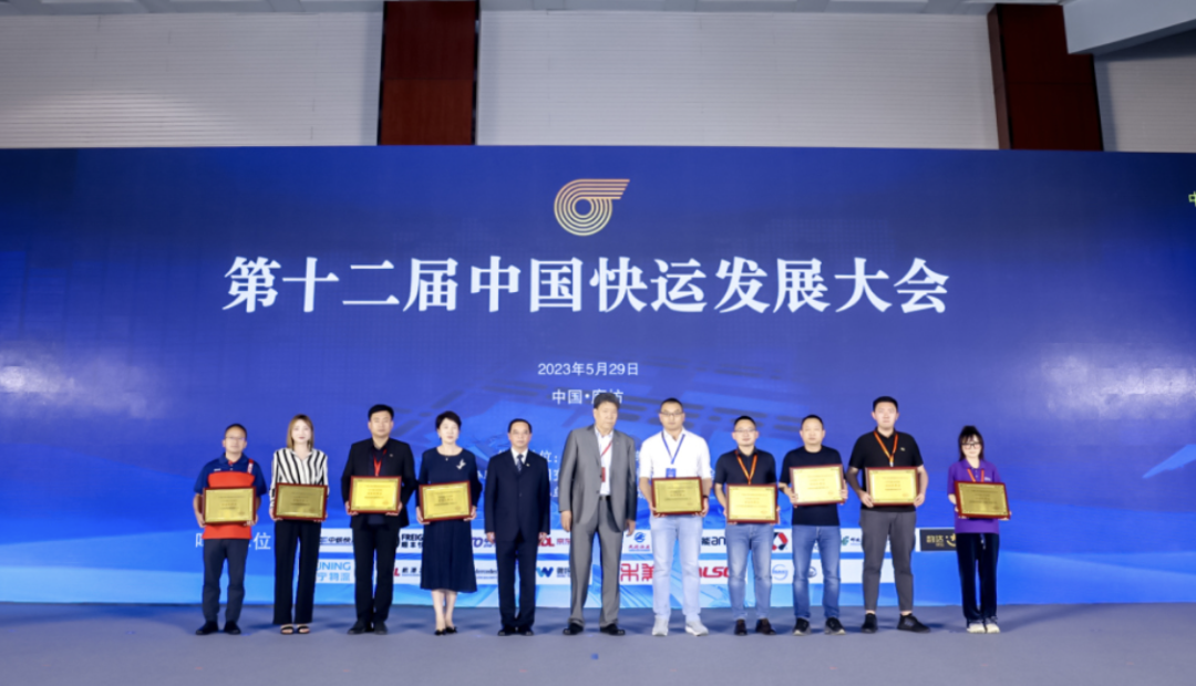 中国交通运输协会快运物流分会常务副会长陈宏兵(左四)为“2022快运物流企业高质量发展推荐案例”入选企业授牌