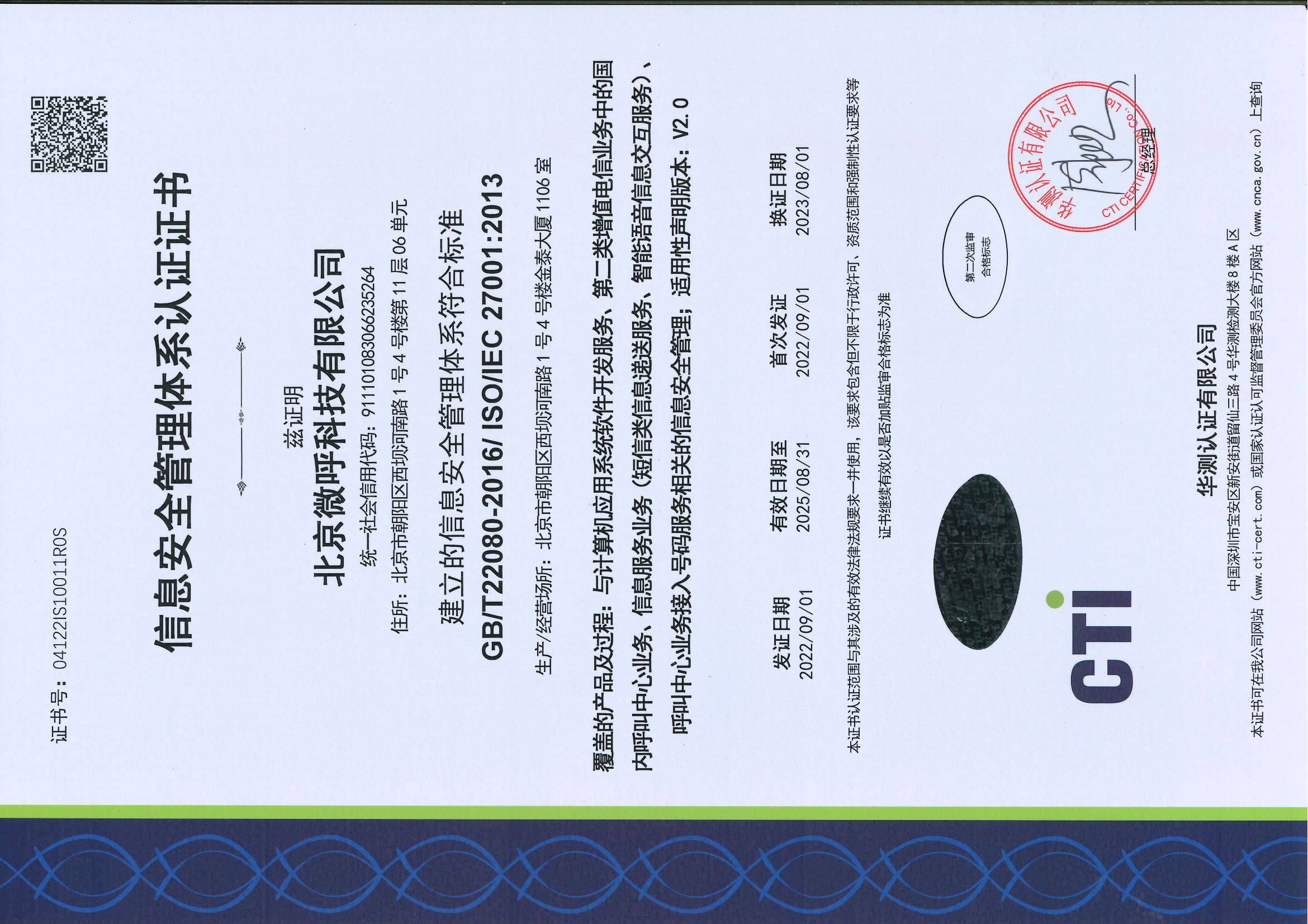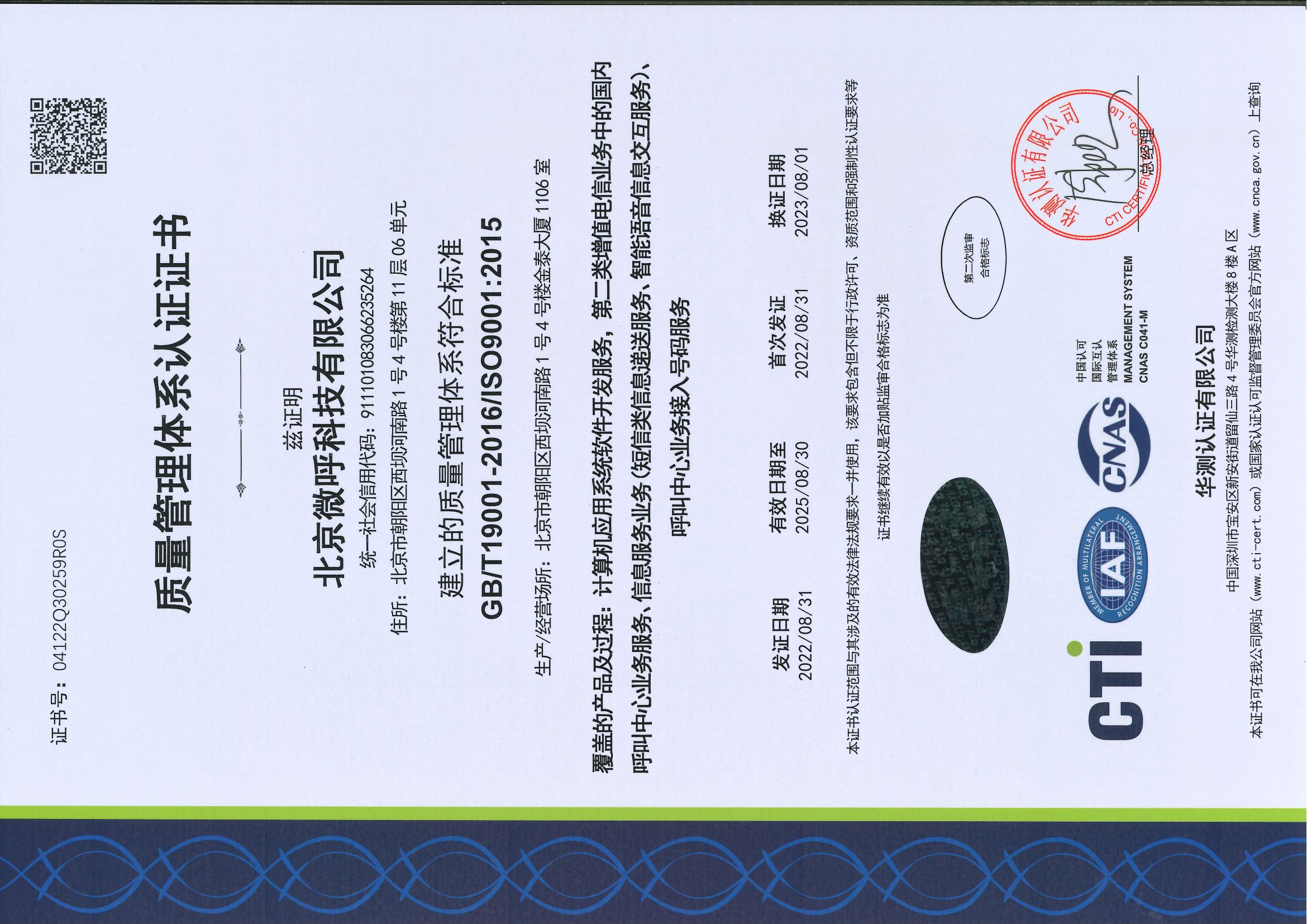 同时,微呼科技秉持严谨认真的态度,在内外审查和监控方面始终贯彻ISO9001质量管理体系、ISO20000信息技术服务管理体系、ISO27001信息安全管理体系和ISO22301业务连续性管理体系认证四项国际管理认证标准。定期进行内部审查和外部监控,以确保公司各项体系有效运行的同时,不断适应新的威胁和变化,为客户和行业合作伙伴持续输出稳定优质的服务保障。在今年6月,微呼科技继续顺利通过了上述四个体系认证。审核组专家充分肯定公司各体系运行的有效性,满足相关管理体系要求,同意继续保持各管理体系认证证书资格。证书由华测认证有限公司审核并颁发。