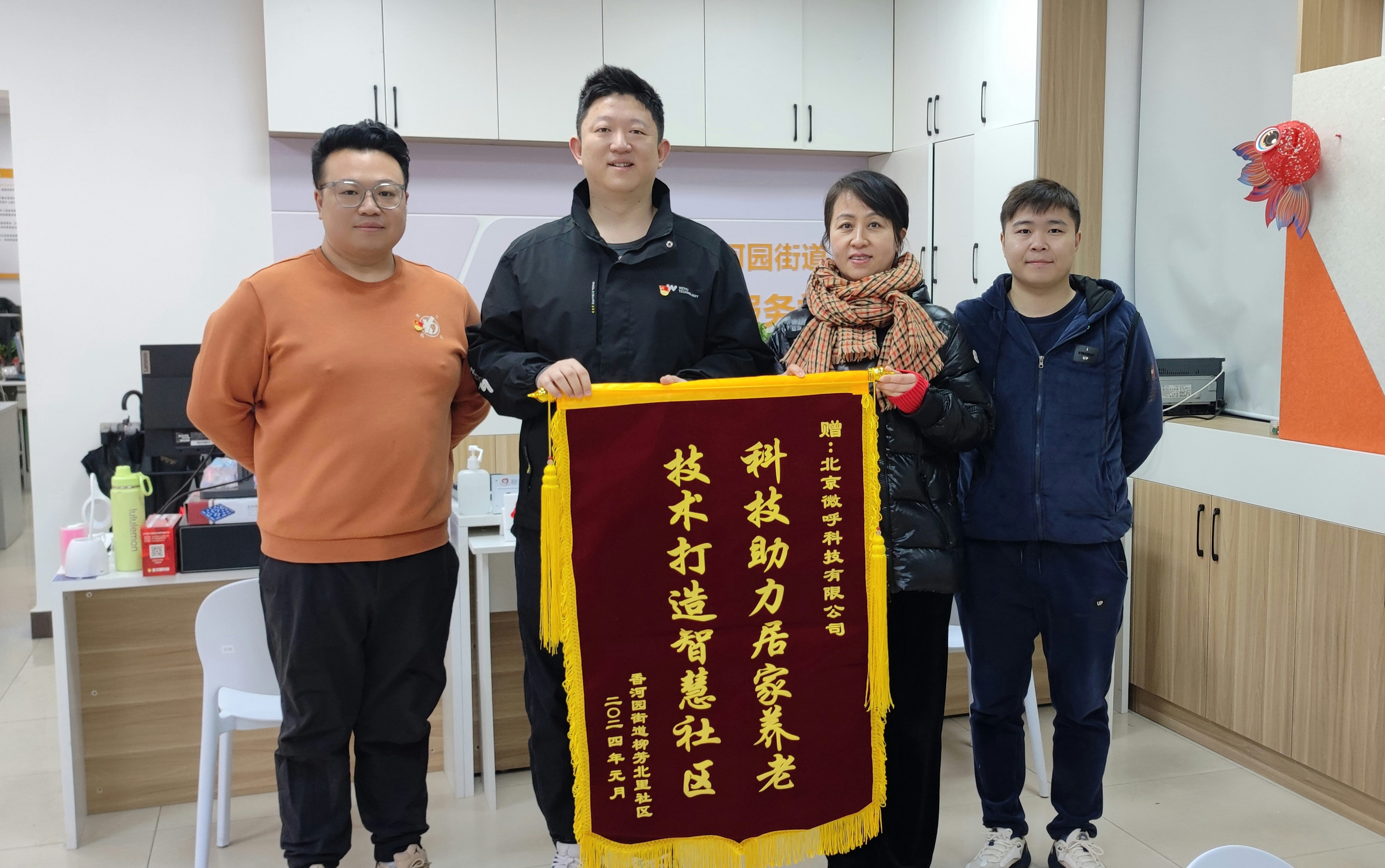 近日,北京微呼科技有限公司(以下简称“微呼科技”)收到柳北社区赠送的锦旗,并对微呼科技在柳北社区实施的智能化养老、助老服务试点,所做出的突出贡献给予高度评价。