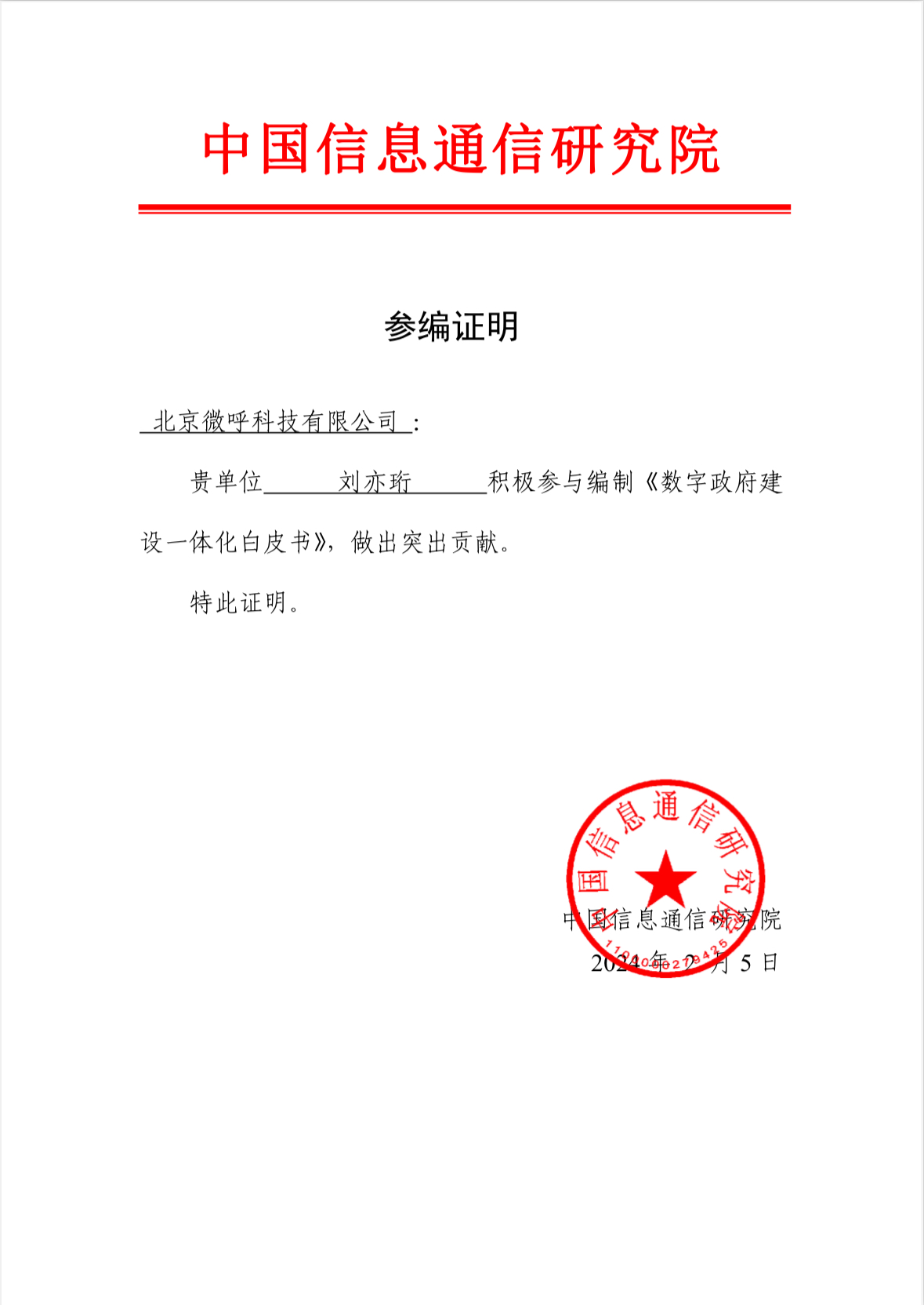 近日,中国信息通信研究院正式发布《数字政府一体化建设白皮书(2024年)》,北京微呼科技有限公司(以下简称“微呼科技”)参与编制。
