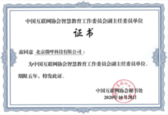 会上,微呼科技正式成为中国互联网协会智慧教育工作委员会副主任委员单位,CEO靳晓鹏被任命为委员会副主任委员。