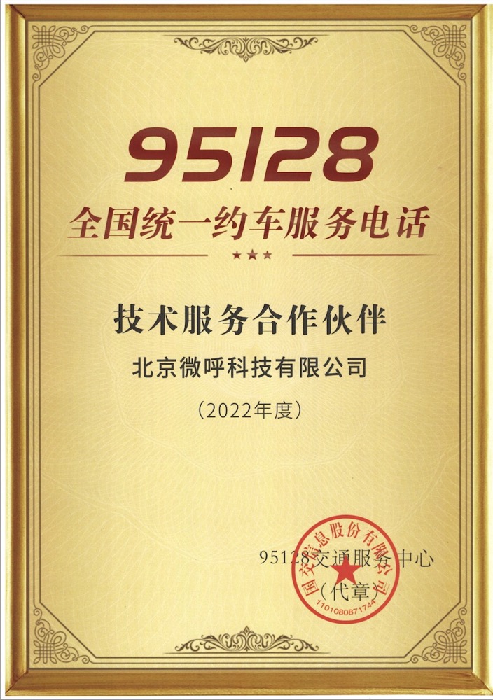 喜讯|微呼科技喜获“95128全国统一约车服务热线技术服务合作伙伴”称号