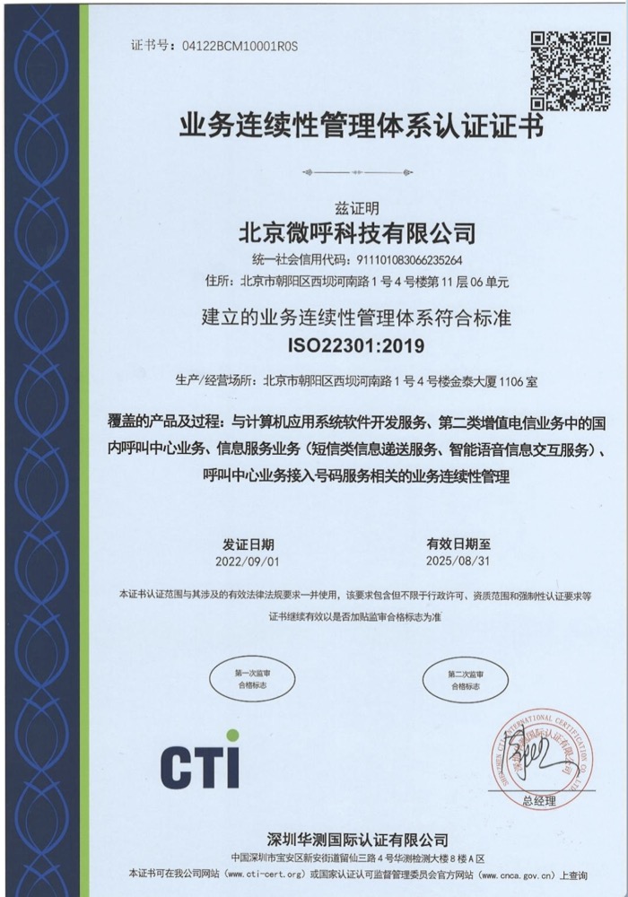 未来,微呼科技会继续坚持贯彻执行已取得的ISO20000、ISO27001、ISO22301、ISO9001四项国际管理体系资质认证标准,严格规范管理企业行为,持续提高技术创新能力,提升服务完善程度,增强企业核心竞争力。微呼科技将不忘初心继续保持在质量、技术、服务、安全、稳定等方面的优势,从多维度持续提升企业管理能力,持续为客户提供稳定、安全、高质、可靠的产品服务,为客户业务的高效运行提供有力支撑,为客户智能化升级贡献微呼力量。