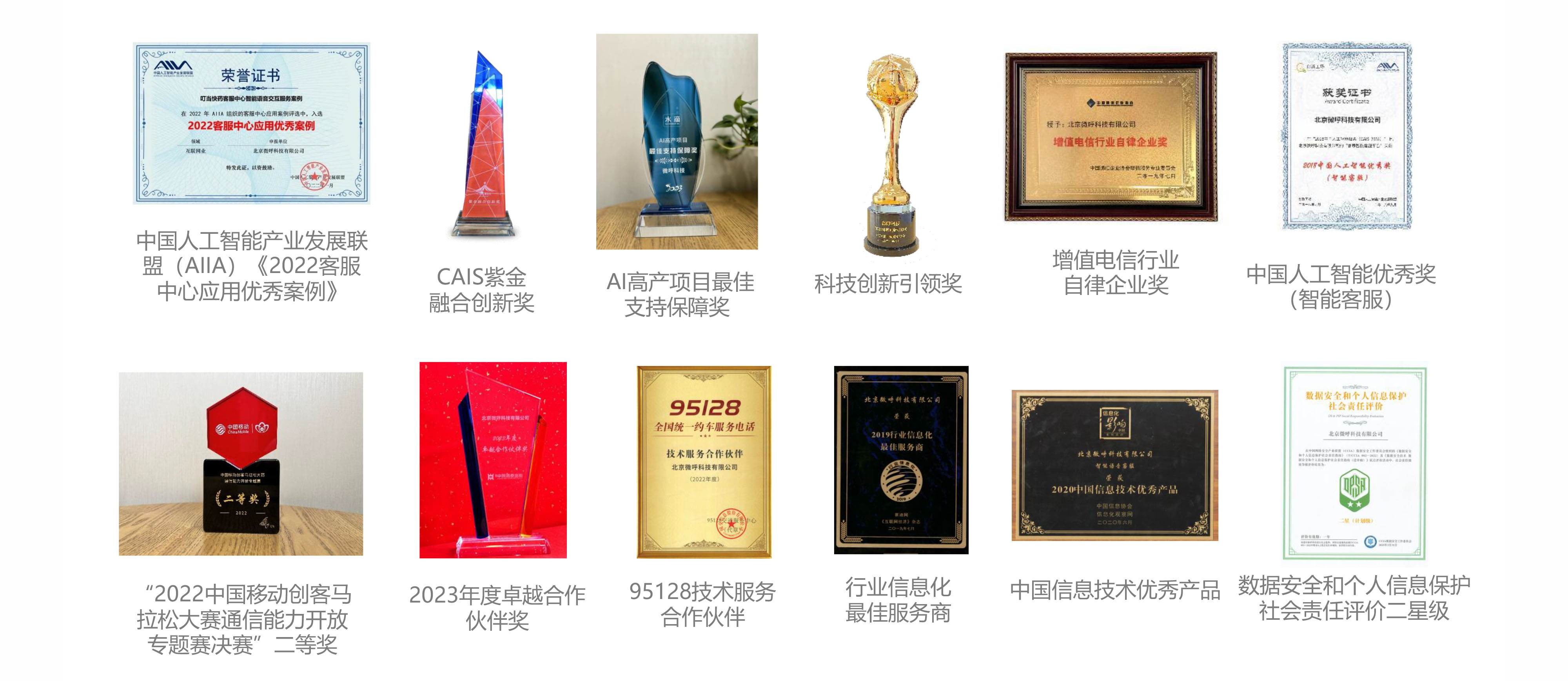 北京微呼科技有限公司(简称“微呼科技”)作为国内深耕行业的“智能触达”解决方案提供商,一直专注于toB、toG领域,拥有自主研发的核心AI知识产权,并具备增值电信业务经营许可资质,具有AI落地所必需的稳定通讯资源,集“AI+通讯”能力于一身。微呼科技运用创新的人工智能与知识图谱技术、多维度的通讯能力,搭建了口碑优秀的智能语音、通信、号码认证平台,形成自主且完善的智能应用解决方案。我们的解决方案,可灵活采用私有化部署、云服务等多种方式,为金融、物流、汽车、电商、公共机构等众多行业客户提供专业高效的智能服务,持续满足客户的智能先进化需求。